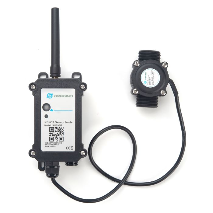 The Dragino SW3L-NB is a NB-IoT Flow Sensor. It detects water flow volume and uplink to IoT server via NB-IoT network. User can use this to monitor the water usage for buildings.
